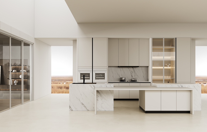 通过金年会厨柜量体裁柜,定制出适合主厨下厨的烹饪区和洗涤区的舒适高度。