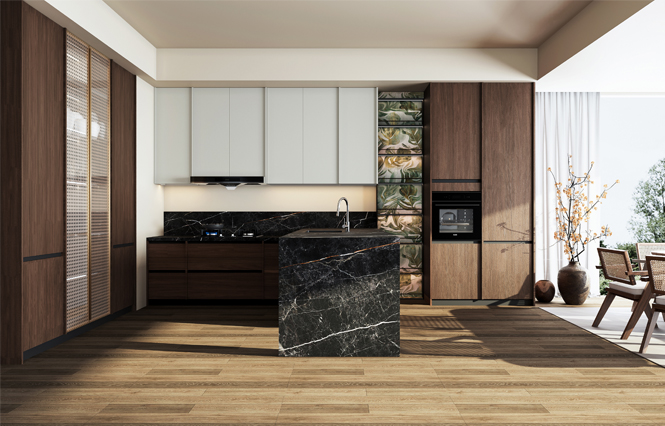 通过金年会厨柜量体裁柜,定制出适合主厨下厨的烹饪区和洗涤区的舒适高度。